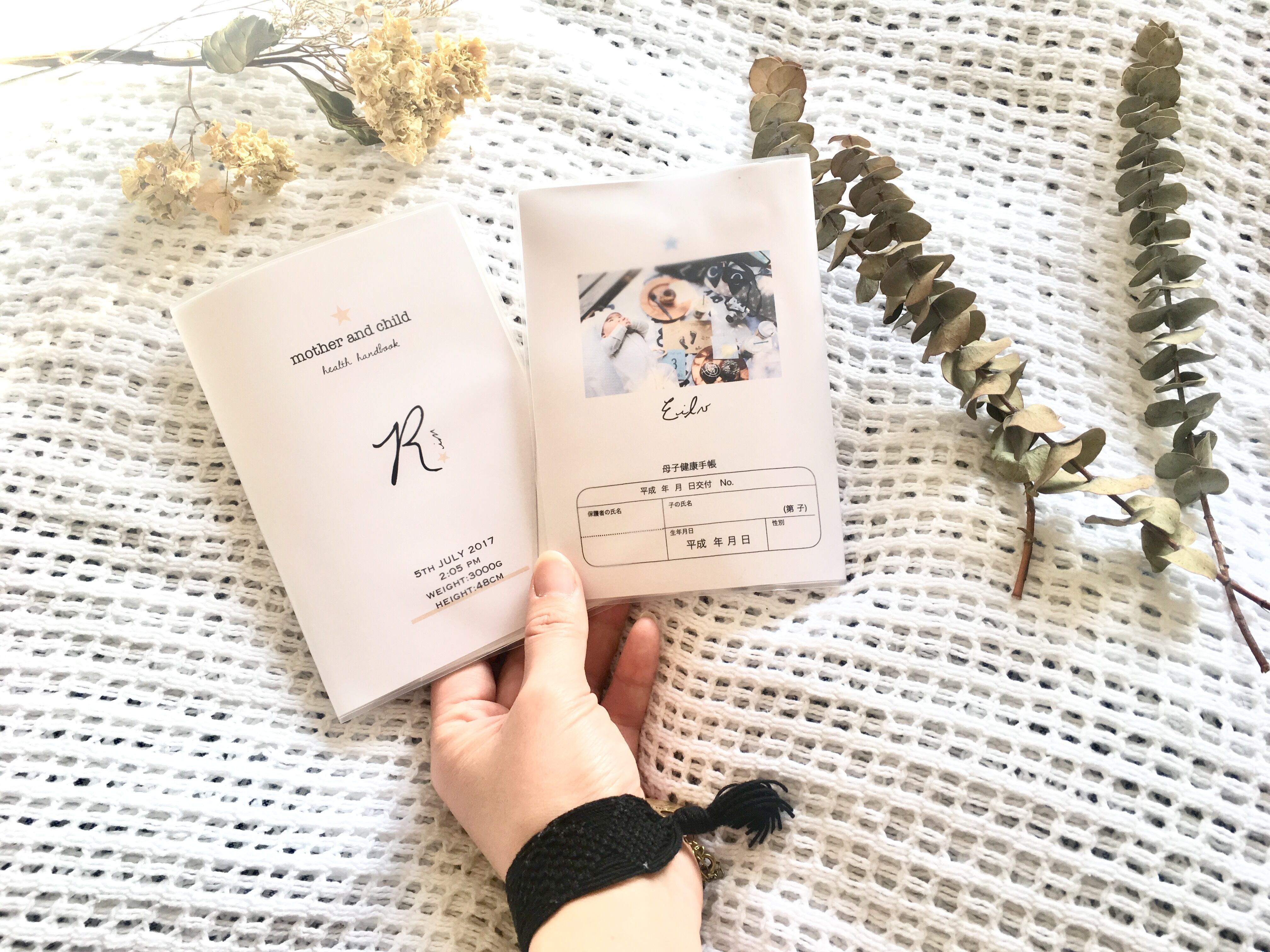 お名前お写真入りの母子手帳カバー【Cursive】です。